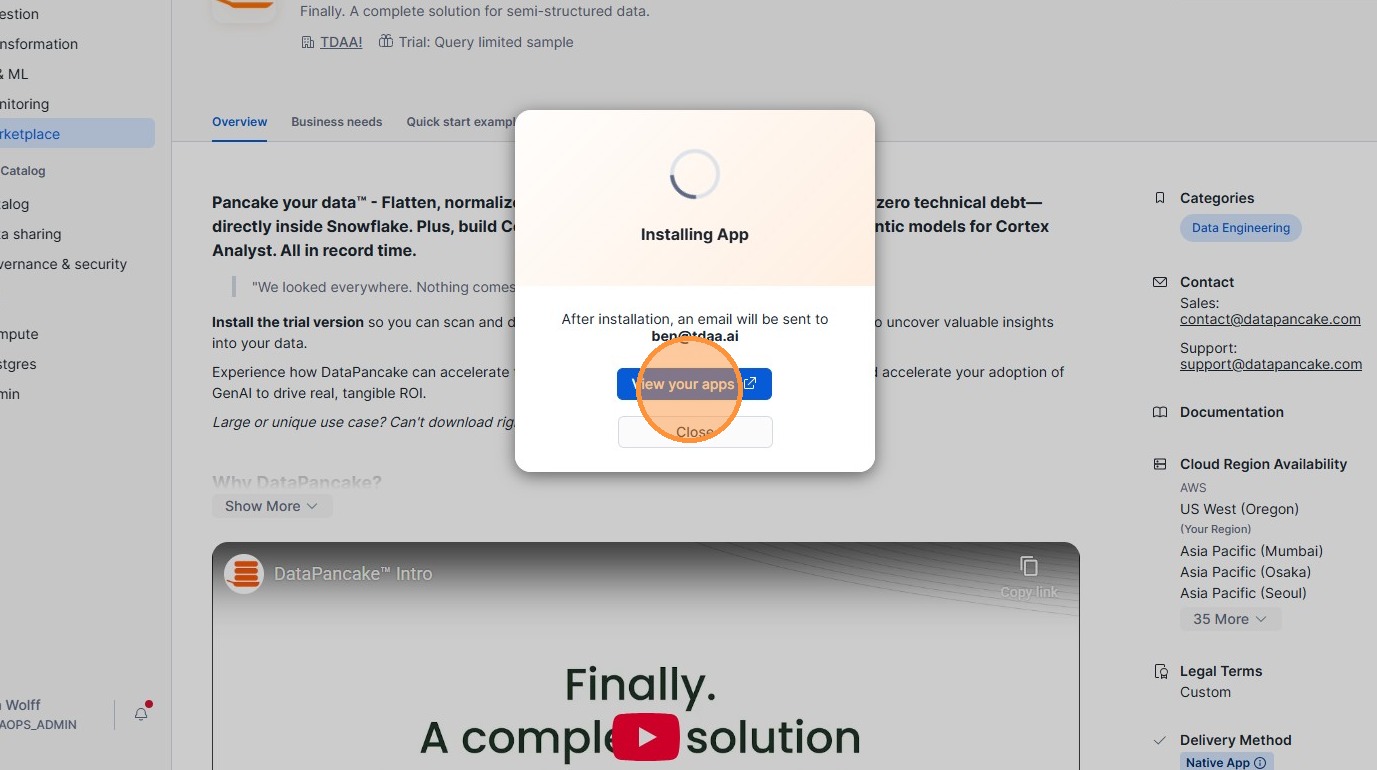 Purchase and Install the DataPancake Snowflake Native App into an existing Snowflake account.